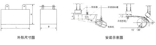 產品概述: 適用于皮帶輸送機、振動給料機、下料溜槽上的非磁性物料中除鐵。 技術特點: 1、采用高矯頑力、高剩磁的永磁體釹鐵硼等組成復合磁系,磁場強、吸力大。 2、安裝簡單、使用方便、運行可靠、免維護。